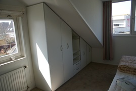 U heeft ook zoveel onbenutte ruimte, er past werkelijk net geen enkele kast, de dak schuinte zit in de weg, de gording loopt er door enz.